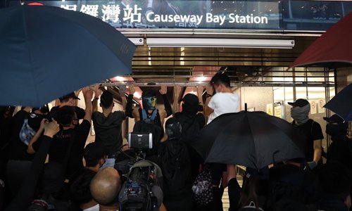 Rioters trash the metro station at Causeway Bay in Hong Kong, south China, Oct. 4, 2019. (Xinhua)