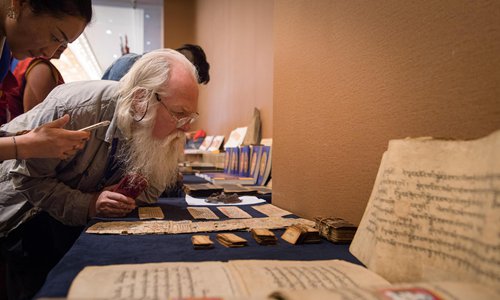 A foreign expert views some ancient documents in Lhasa, Southwest China's Tibet Autonomous Region in June 2018. Photo: VCG