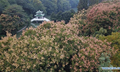 Photo taken on Oct. 8, 2019 shows a view at Huancheng Park in Hefei, capital of east China's Anhui Province. (Xinhua/Zhang Duan)