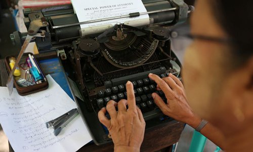 A typist types out a legal contract in Yangon, Myanmar, Oct. 1, 2019. (Xinhua/U Aung)