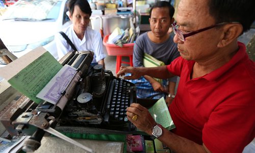 "Typewriters market is still alive, but human resources become less in number as one who can type a typewriter well isn't enough to be a qualified one unless he or she has expertise in knowledge in respective fields, language, speed and accuracy. So, there are only few numbers of qualified typists left nowadays," said U Myint Thein, owner of "Hein" typing and typewriters repair services shop and a typist himself.