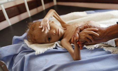 A malnourished child is seen at a hospital in Hajjah province, Yemen, Oct. 1, 2018. (Xinhua/Mohammed Mohammed)