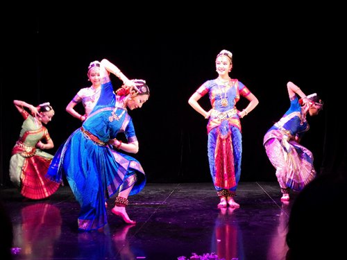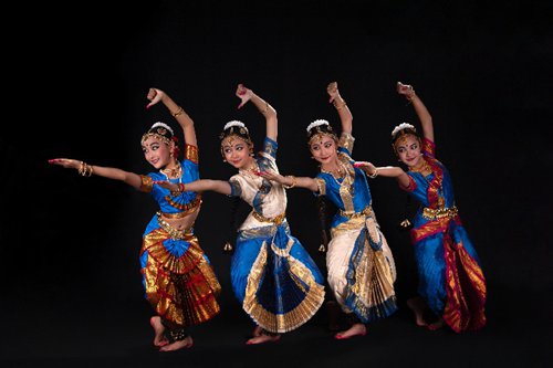 Young Chinese Bharatanatyam dancers perform in a recent show in Beijing. (Photo provided by Jin Shanshan)