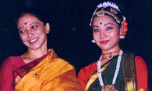 Jin Shanshan (right) poses with Leela Samson after a performance in New Deli, India, on May 20, 1999. (Photo provided by Jin Shanshan)