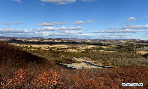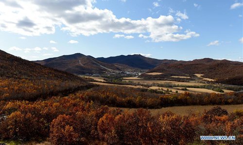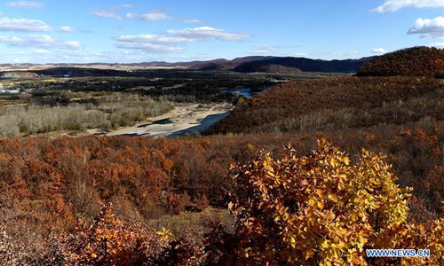 Photo taken on Oct. 10, 2019 shows the autumn view in the city of Zalantun, North China's Inner Mongolia Autonomous Region. (Xinhua)