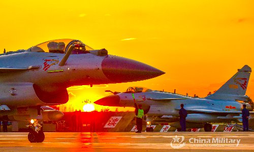 J-10 fighter jets attached to an aviation brigade of the air force under the PLA Southern Theater Command taxi on the runway to their parking spots after completing an unscripted night air combat exercise on October 10, 2019.(eng.chinamil.com.cn)