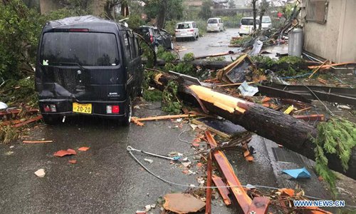 Photo taken on Oct. 12, 2019 shows the scene after a tornado hit Chiba Prefecture near Tokyo, Japan. A tornado formed during the course of the Typhoon Hagibis hit Chiba Prefecture near Tokyo on Saturday, injuring five people, according to Chiba's prefectural government. The tornado destroyed a house and damaged at least nine others. A man was found dead in an overturned car, though it was not immediately known if the tornado caused his vehicle to roll over, local officials said. (Xinhua)