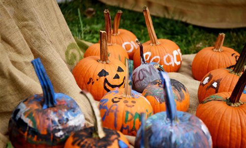 Decorated pumpkins are seen at the Pumpkin Patch in Queens Botanical Garden in New York, the United States, Oct. 12, 2019. Pumpkin patch activities were held here to celebrate the autumn harvest over the weekend, including harvest-themed photo opportunities, pumpkin decorating, crafts, mini-maze and botanical demonstrations. (Xinhua)