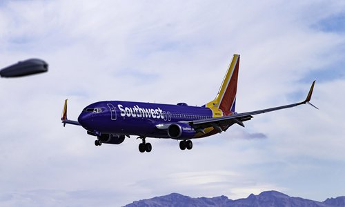 A Southwest Airlines 737NG is landing at McCarran Airport with mountains in background. File photo: IC