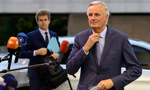 EU Brexit negotiator Michel Barnier arrives to answer journalists prior to a summit on Brexit in Luxembourg on Tuesday. Photo: VCG