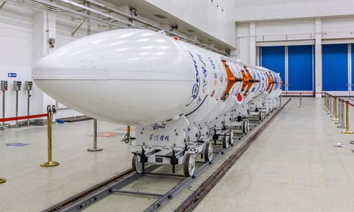 Photo taken on July 23, 2019 shows the carrier rocket SQX-1 Y1 in the Jiuquan Satellite Launch Center in northwest China. (i-Space/Handout via Xinhua)