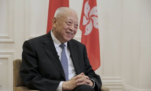Tung Chee-hwa, former and the first chief executive of China's Hong Kong Special Administrative Region, speaks during an interview with Xinhua in Hong Kong, south China on Sept. 18, 2019. (Xinhua/Wang Shen)