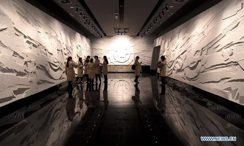 People visit the Erlitou Relic Museum in Luoyang, central China's Henan Province, Oct. 19, 2019. The Erlitou Relic Museum, which exhibits the history of ancient China's first recorded dynasty of Xia (2070-1600 B.C.), opened Saturday in Luoyang. It exhibits over 2,000 items, including bronze wares, pottery wares and jade wares. Covering an area of 32,000 square meters, the museum exhibits the history of the Xia Dynasty, the first dynasty recorded in ancient China. Construction of the museum cost 630 million yuan (about 89 million U.S. dollars). The Erlitou Relics date back to 3,500 to 3,800 years ago in ancient China's late Xia or early Shang (1600-1046 B.C.) dynasties. (Xinhua/Li An)