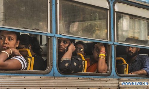 Passengers take a bus in Kolkata, India on Oct. 19, 2019. India's passenger vehicle retails sales in September declined 20.1 percent to 157,972 units against the same period last year, the steepest fall on record, according to data released by India's Federation of Automobile Dealers Associations (FADA). (Photo: Xinhua)