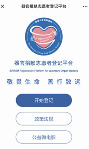 A screenshot of the entry for the organ donation registration platform at the University of Hong Kong-Shenzhen Hospital WeChat public account.