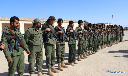 Special combat unit of Afghan security force stand in line in Greshk district of Helmand province, Afghanistan, Oct. 19, 2019. A special combat unit of Afghan security forces has started operation to stabilize Afghanistan's war-ravaged provinces involving a major gas pipeline project, an official said Monday. (Photo by Abdul Aziz Safdari/Xinhua)