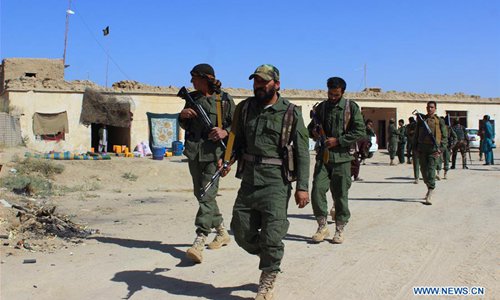 Special combat unit of Afghan security force are seen in Greshk district of Helmand province, Afghanistan, Oct. 19, 2019. A special combat unit of Afghan security forces has started operation to stabilize Afghanistan's war-ravaged provinces involving a major gas pipeline project, an official said Monday. (Photo by Abdul Aziz Safdari/Xinhua)