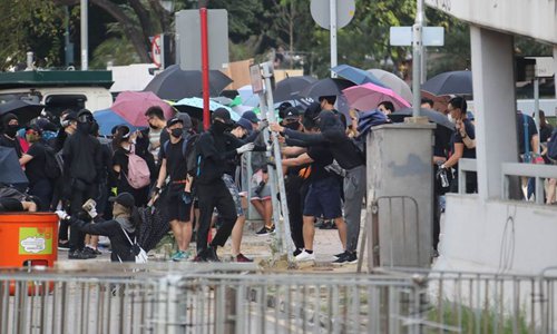 Rioters damage facilities on the Jordan Road in Hong Kong on Sunday. Photo: Xinhua