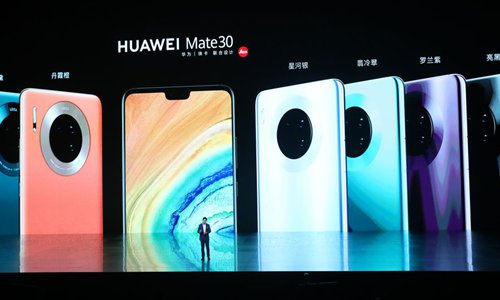 Richard Yu, CEO of Huawei Consumer Business Group, unveils Huawei's new Mate 30 Series smartphone products at a press conference in Shanghai, east China, Sept. 26, 2019. (Xinhua/Fang Zhe)