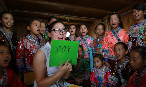 A photo featuring a volunteer teaching in remote areas Photo: Courtesy of Zhang Jun