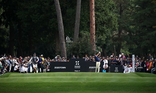 Jason Day hits a tee shot during the Zozo Championship on Thursday in Inzai, Chiba, Japan. Photo: VCG