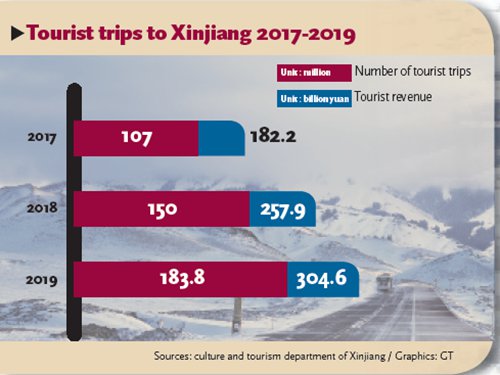 Statistics show that between January to September, Xinjiang welcomed 184 million visitors, a 40.9 percent increase annually, and received an income of 304.6 billion yuan, 40.78 percent higher than last year, according to the statement of the culture and tourism department of Xinjiang.