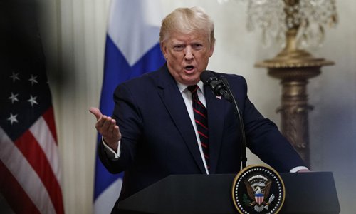 US President Donald Trump attends a joint press conference with visiting Finnish President Sauli Niinisto (not in the picture) at the White House in Washington D.C., the United States, on Oct. 2, 2019. (Photo: Xinhua)