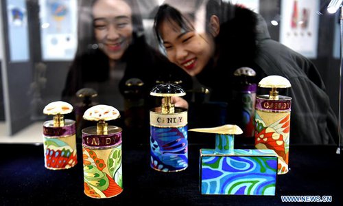 Visitors view cloisonne works at an exhibition in Dachang Hui Autonomous County of north China's Hebei Province, Oct. 26, 2019. (Xinhua/Wang Xiao)