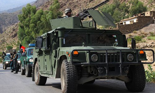 Photo taken on Sept. 24, 2018 shows military vehicles on a military operation against the Islamic State (IS) group in Watapur district of Kunar province, Afghanistan.(Photo: Xinhua)