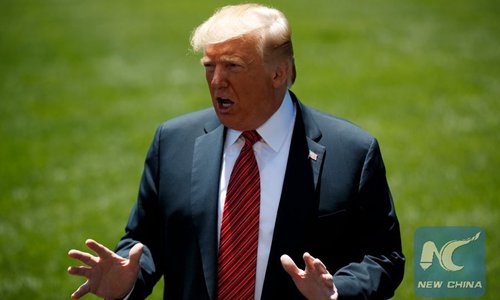 File Photo: U.S. President Donald Trump speaks to reporters before leaving the White House in Washington D.C., the United States, on June 11, 2019. (Xinhua/Ting Shen)