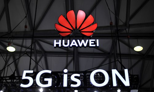 A view of a "5G is On" banner above Huawei's booth at the MWC19 in East China's Shanghai Municipality on June 27 Photo: IC