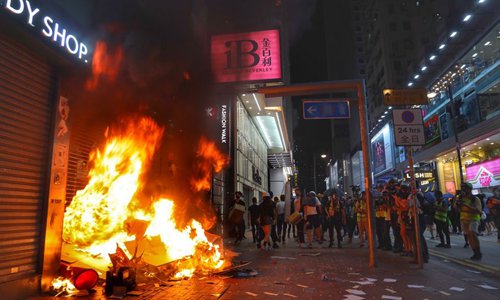 Rioters set fire at Causeway Bay in Hong Kong, south China, Oct. 4, 2019. (Xinhua)