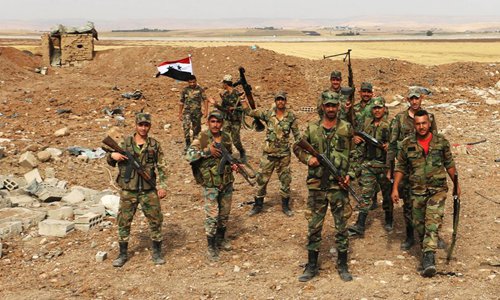 Syrian soldiers are seen upon deploying on the Syrian-Turkish border in the countryside of Qamishli city in al-Hasakah province, northeastern Syria. (Xinhua)