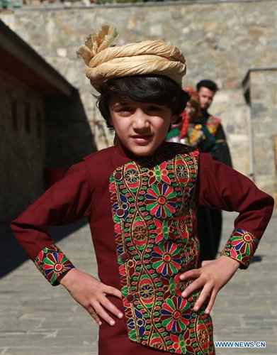 A child model poses for photos after presenting costumes of ethnic people in Afghanistan during a fashion show in Kabul, capital of Afghanistan, Nov. 4, 2019. (Photo by Rahmatullah Alizadah/Xinhua)