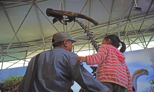 Inset: Visitors explore the museum inside the Jiayin Dinosaur National Geopark in Heilongjiang Province, Northeast China, on August 9. Photo: IC