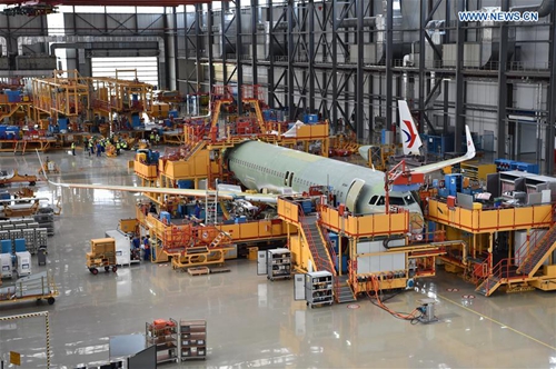 Photo taken on September 27, 2018 shows staff members working at Airbus' Tianjin final assembly line for the A320-family of jets in north China's Tianjin. Photo: Xinhua