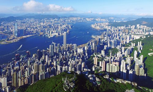 Aerial photo shows the scenery on the both sides of the Victoria Harbour in Hong Kong, south China. (Xinhua/Lui Siu Wai)