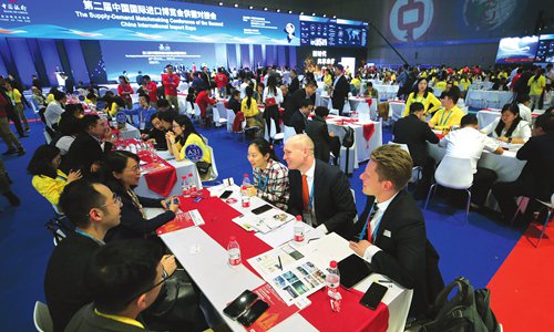 Buyers and sellers talk business at a supply-demand matchmaking conference during the CIIE on Wednesday. Photo: Yang Hui/GT