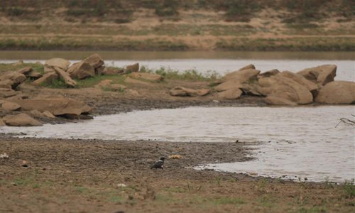 A bird is seen near a drying reservoir in Mt. Darwin, Zimbabwe, Oct. 11, 2019. Zimbabwe is facing severe food shortages due to a combination of drought and cyclone this year. (Xinhua)