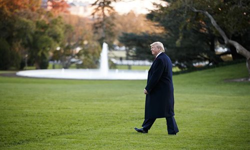 US President Donald Trump (R) leaves the White House in Washington D.C., the United States, on Nov. 6, 2019. (Photo by Ting Shen/Xinhua)