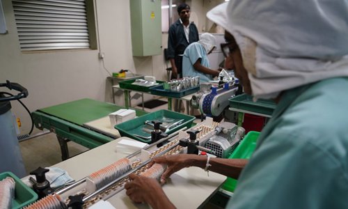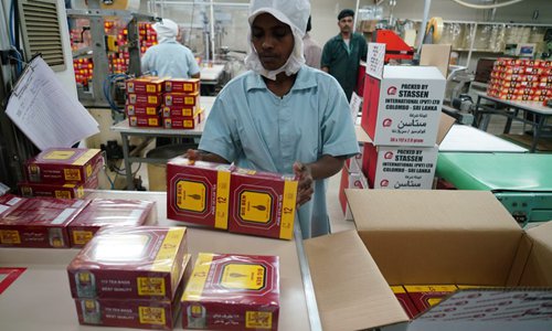 Staff members work on the production line of organic teas at Stassen Exports Private Limited in Colombo, Sri Lanka, Oct. 28, 2019. (Xinhua/Tang Lu)