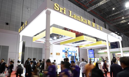 People visit the Sri Lanka pavilion during the second China International Import Expo (CIIE) in Shanghai, east China, Nov. 6, 2019. (Xinhua/Wang Peng)
