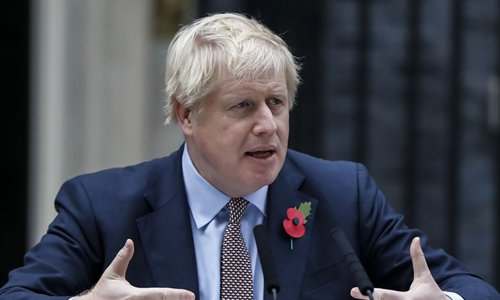 British Prime Minister Boris Johnson makes a statement outside 10 Downing Street in London, Britain on Nov. 6, 2019.(Xinhua/Han Yan)