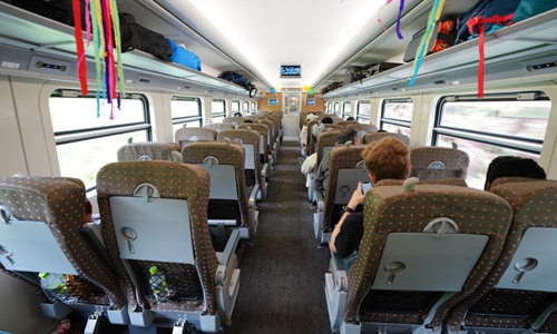 Photo taken on Nov. 1, 2019 shows that on the high quality Chinese-made trains, passengers enjoy a comfortable and smooth ride while enjoying the beauty of the tea gardens and the lush mountains. Photo:Xinhua