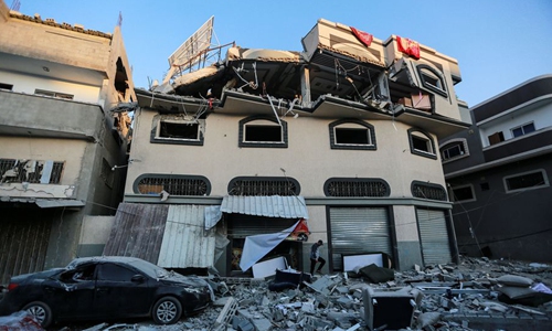 A Palestinian inspects the damaged house of Islamic Jihad leader Baha Abu al-Atta after an Israeli attack in Gaza City, Nov. 12, 2019. (Xinhua/Mohammed Dahman)