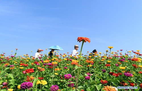 People walk in flowers at Lianhuashan ecological tourism resort in Changchun, capital of northeast China's Jilin Province, Sept. 4, 2019. (Photo: Xinhua)