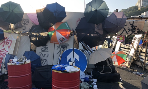 Rioters leave a mess at the No.2 Bridge that leads to the Chinese University of Hong Kong after they disrupted traffic around the campus last week. Photo: Wang Wenwen/GT