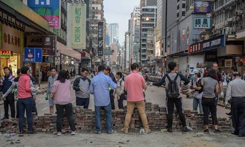 Johnny Tson, a Hong Kong resident who had cleared roadblocks several times in the past week, told the Global Times on Monday that it's their way to express their opposition to rioters who turned black into white and undermined Hong Kong's social stability.