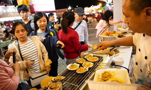 Visitors select food in the 19th Macao Food Festival at Sai Van Lake Square in Macao, south China, Nov. 8, 2019. The 19th Macao Food Festival kicked off in Macao on Friday with about 160 food stalls to serve the visitors. (Xinhua/Cheong Kam Ka)