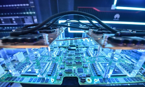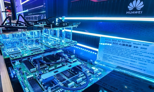 A Huawei Atlas 800 AI server is on display during a press preview for the 2019 World 5G Convention in Beijing, capital of China, Nov. 20, 2019. The 2019 World 5G Convention will open on Nov. 21. (Xinhua/Peng Ziyang)
